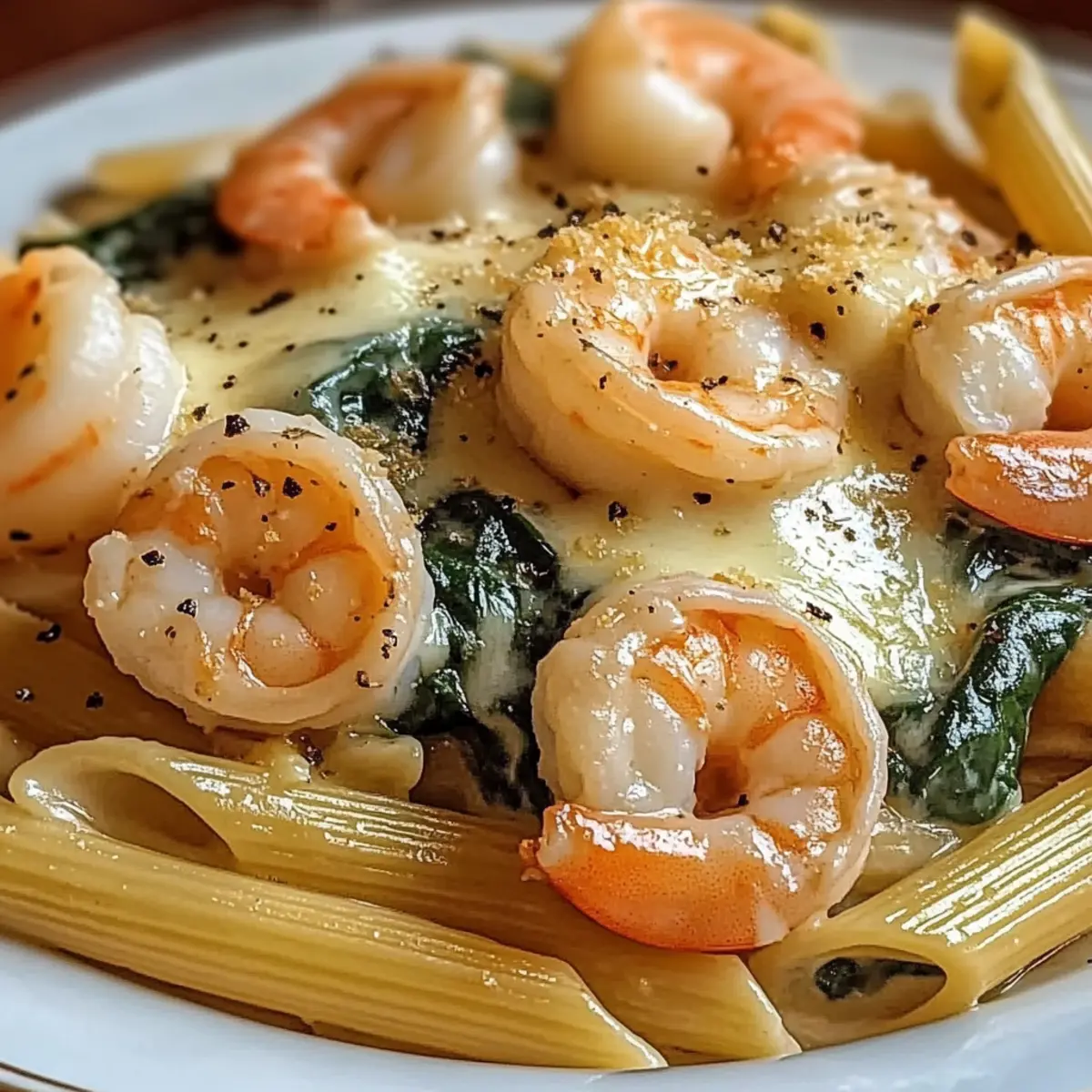 Creamy Cheese Shrimp Penne Pasta & Spinach for Cozy Nights
