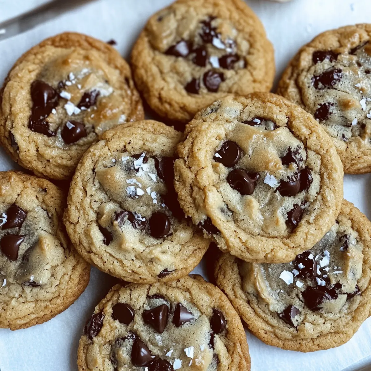Let the cookies rest on the baking sheet for about 5 minutes after baking. Optionally, sprinkle flaky sea salt on top for an extra flavor boost. Then, carefully transfer the cookies to a wire rack to cool completely. Your delicious Chewy Sourdough Chocolate Chip Cookies are now ready to be enjoyed!