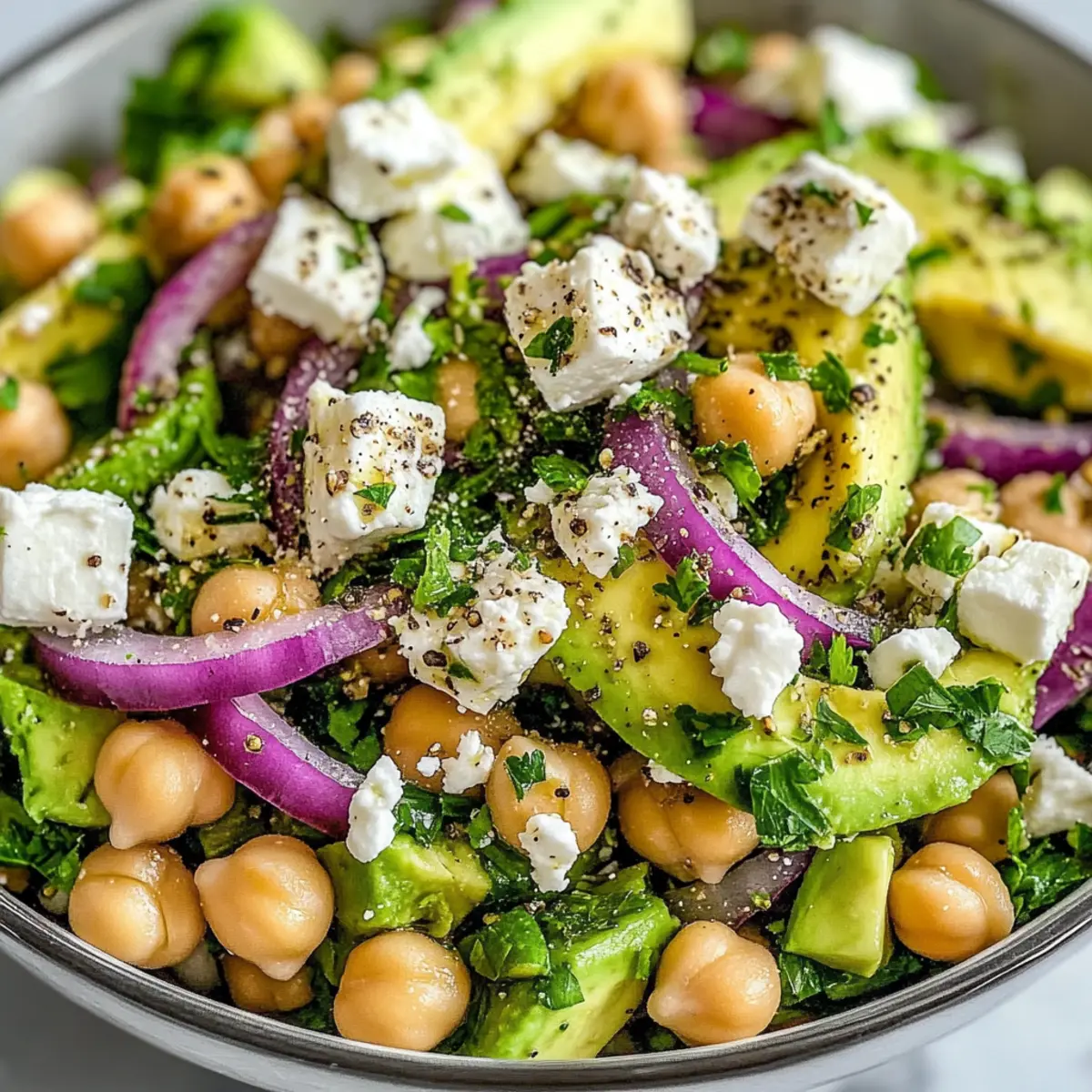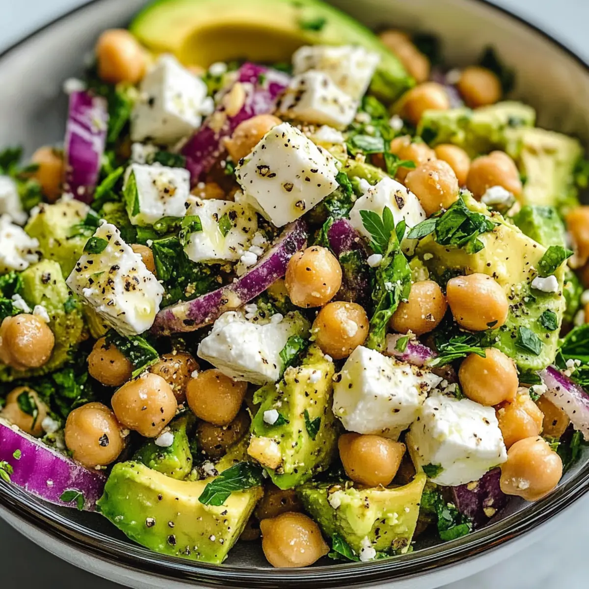 Spicy Kick: For those who enjoy a bit of heat, add a pinch of red pepper flakes or diced jalapeños. This will give your Chickpea Feta Avocado Salad a fun kick that enlivens each bite.