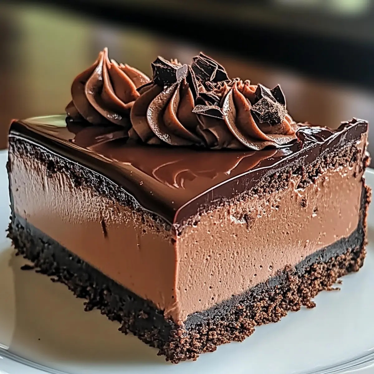 Whipped Cream: Light and fluffy, whipped cream adds a creamy texture that enhances the cheese and chocolate layers. A simple dollop or a decorative swirl takes presentation up a notch while providing a lovely mouthfeel.