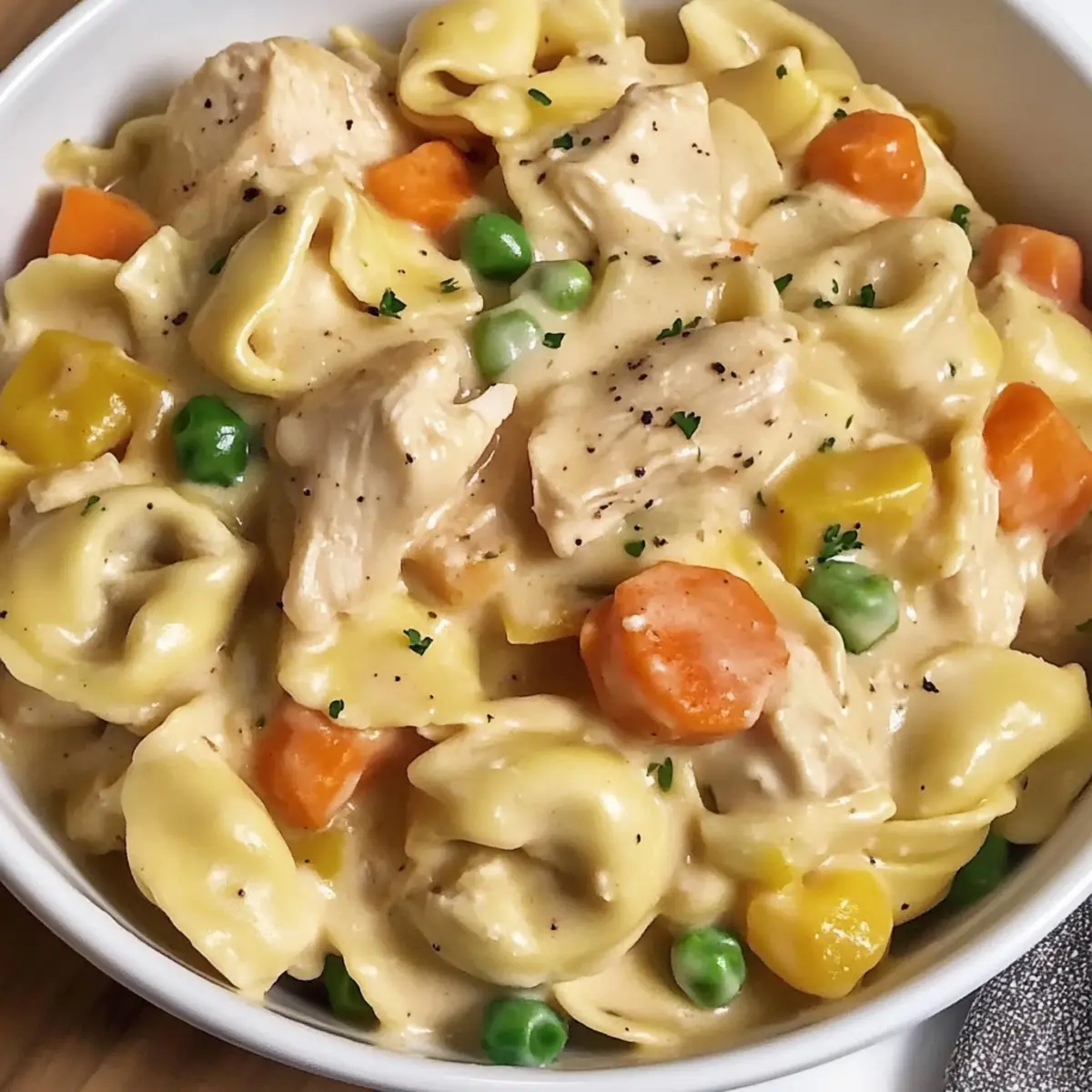 As the fragrant aroma of simmering herbs and spices fills my kitchen, I can’t help but feel cozy and content. There’s something magical about turning a few simple ingredients into a comforting meal that warms the heart, like this Crockpot Cheddar Chicken Pot Pie Tortellini. This recipe marries the classic flavors of a beloved chicken pot pie with the ease of slow cooker preparation, making it perfect for those busy weeknights. With minimal effort, you’re rewarded with a creamy, family-friendly dish that’s not only satisfying but also brimming with tender chicken, savory veggies, and cheesy tortellini. Don’t you just love when comfort food meets convenience? Let’s dive into this delightful recipe together!