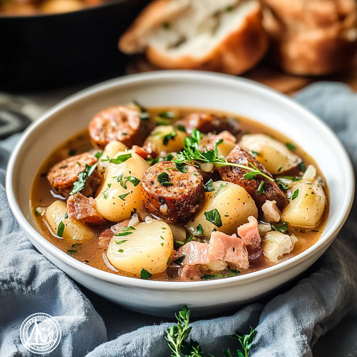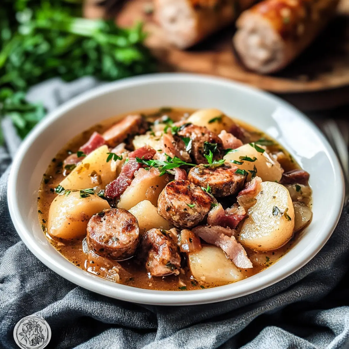 Rich, Savory Flavors: The combination of bacon, sausages, and tender potatoes creates a robust and flavorful experience with every bite.