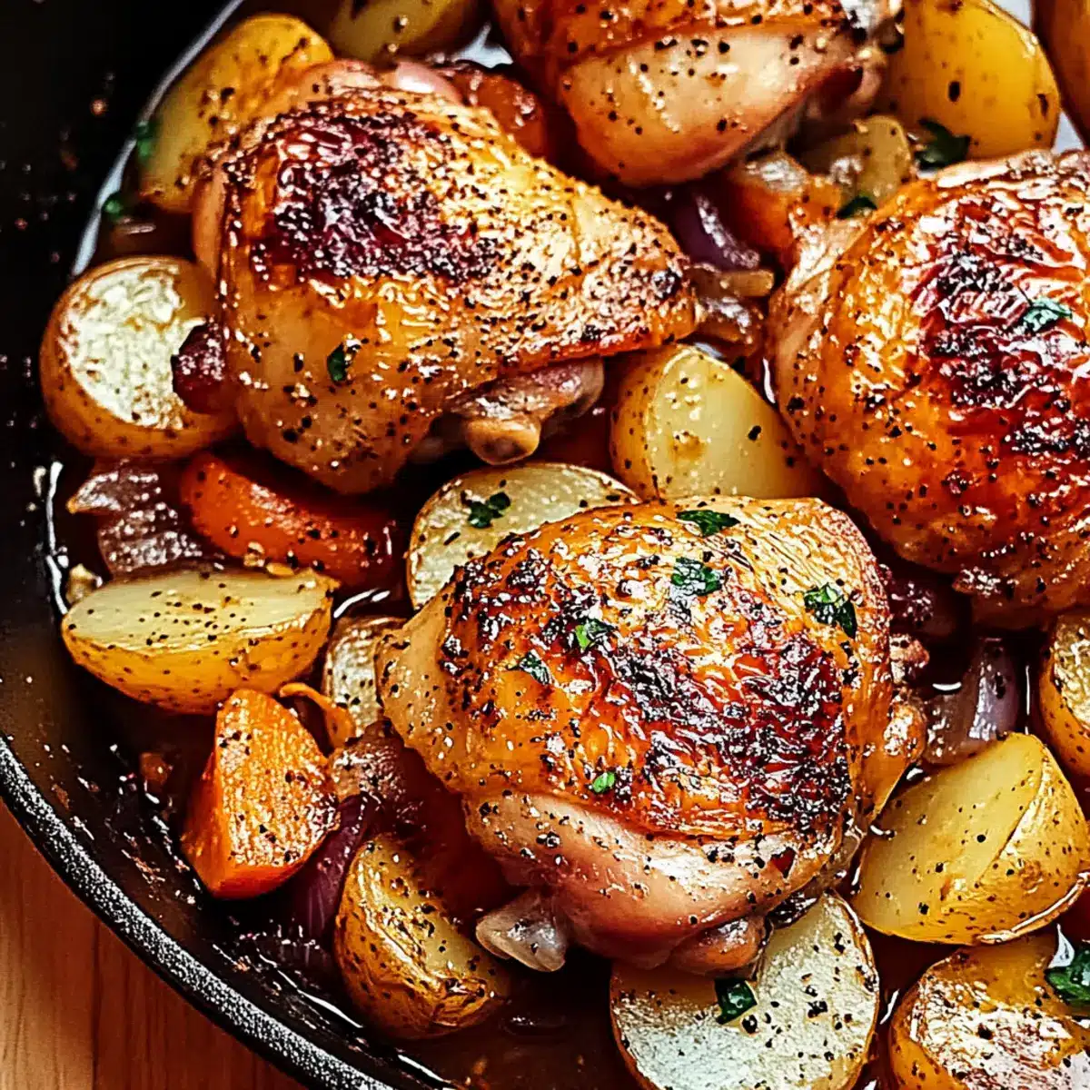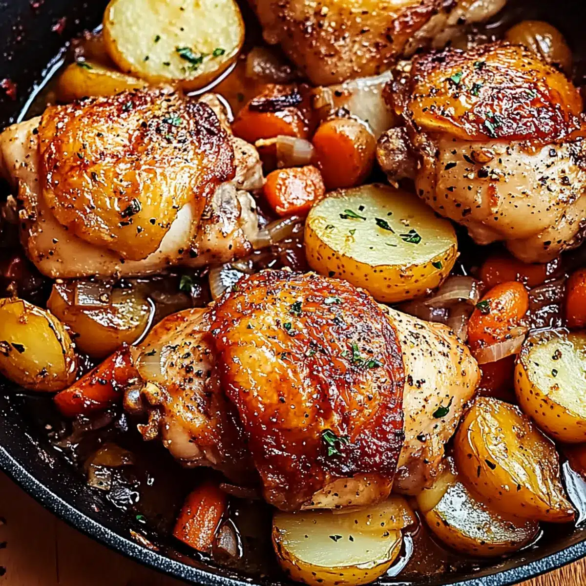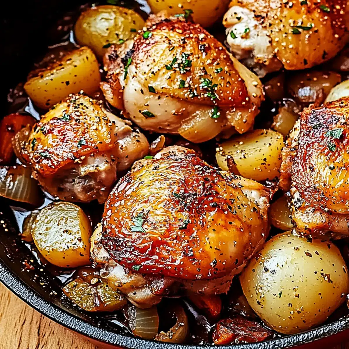 • Bone-in Skin-on Chicken Thighs – Essential for tenderness and flavor; boneless thighs can be used but adjust cooking time.
