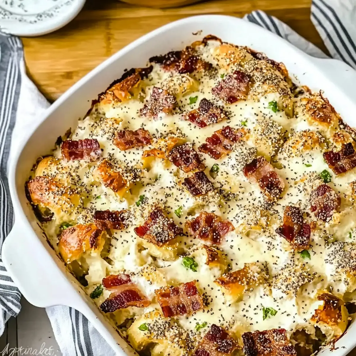 Swap out bacon for sautéed vegetables like bell peppers, spinach, or mushrooms for a colorful and nutritious option. Your casserole will be bursting with vibrant flavors! -