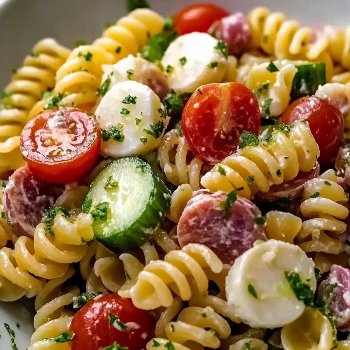 - Caesar Salad: A crisp Caesar salad adds a creamy element that balances the tanginess of your pasta salad wonderfully.