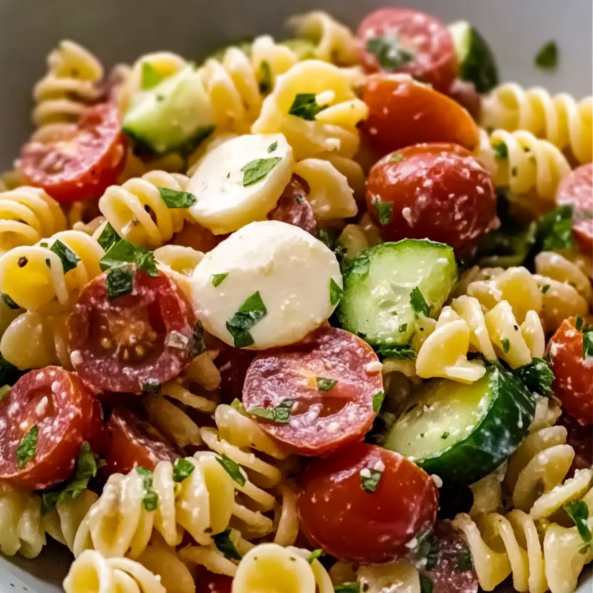 Reheating: If the pasta salad has been refrigerated and you’re enjoying leftovers, gently toss it and add a splash of vinaigrette for added moisture and flavor.