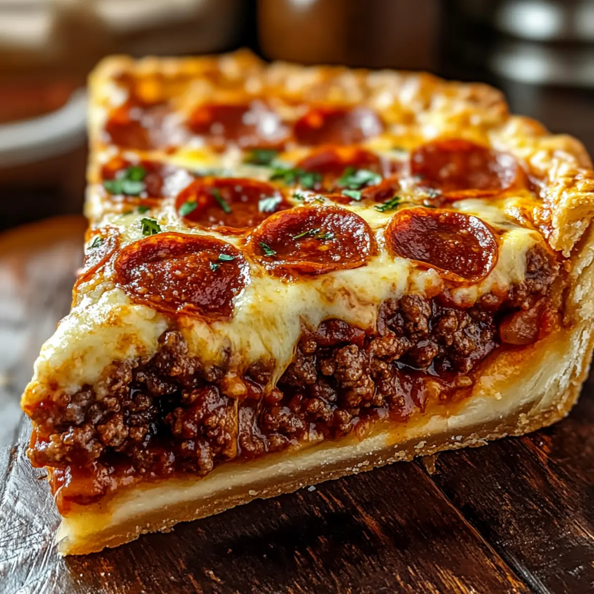 Comforting Fusion: This pie combines the best of both worlds, offering the beloved flavors of pizza nestled in a hearty pie format. Crowd-Pleaser: Perfect for any gathering, it’s a guaranteed hit with family and friends alike—no one can resist a slice! Customizable Delight: Mix and match meats or add your favorite veggies to tailor it to your taste. Time-Saving Marvel: Prepare ahead of time and simply bake when you’re ready to serve, freeing you up for more family fun. Melty Goodness: The layers of gooey cheese and loaded toppings create a mouthwatering experience in every bite. You may also want to try my [Garlic Butter Beef](https://roasl.com/garlic-butter-beef-bites/) or a flavorful [Cheesy Ground Beef and Potatoes](https://roasl.com/cheesy-ground-beef-and-potatoes/) for more hearty recipes!