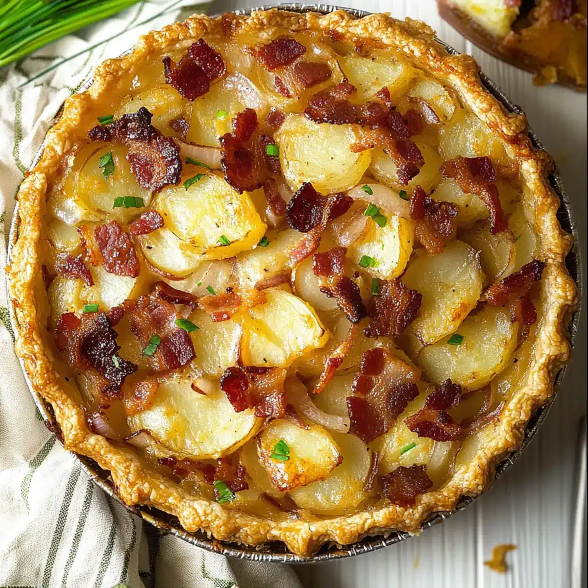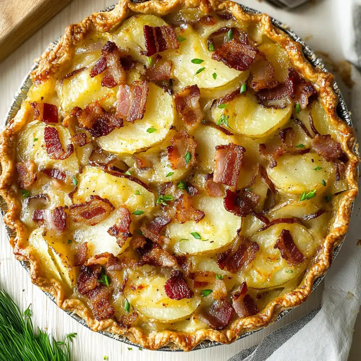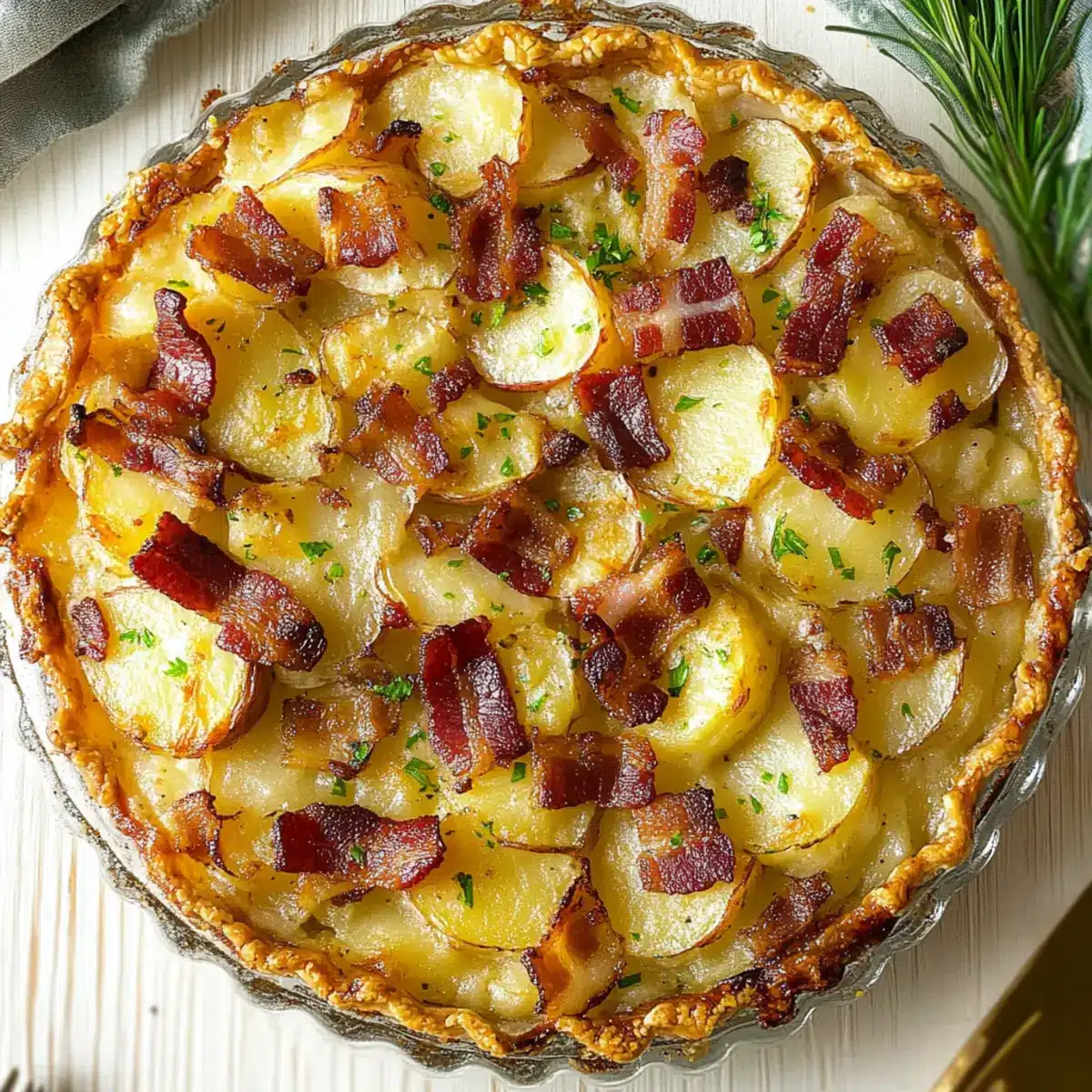 Comforting Layers: The Savory Irish Potato Pie is layered with creamy potatoes, crispy bacon, and sweet onions—a combination that delivers heartwarming flavors with every bite.