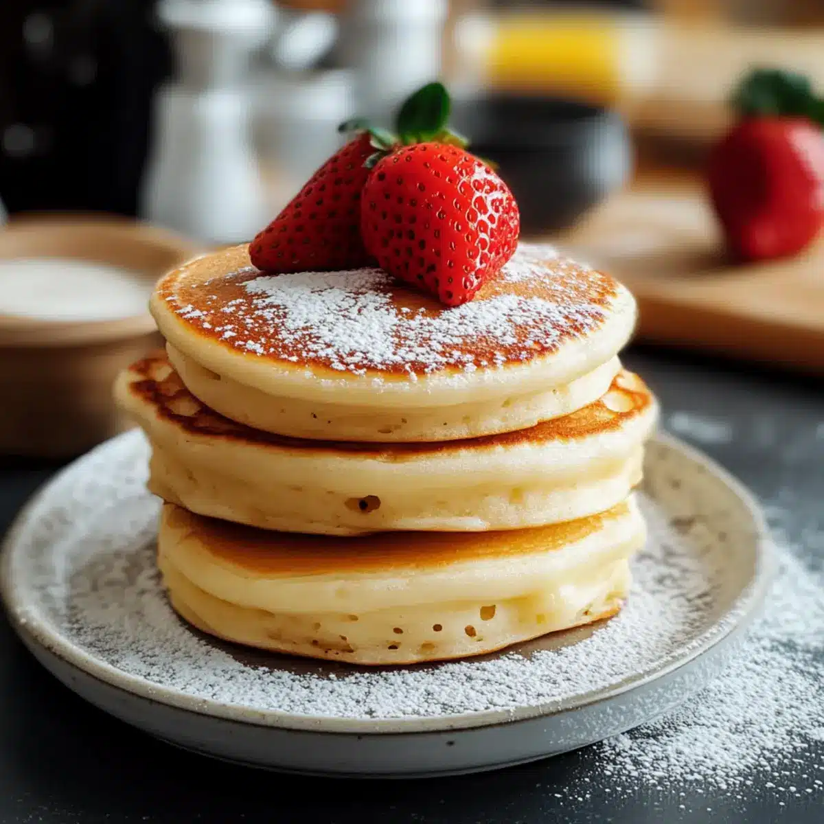 - Serve warm, dust with powdered sugar, and add toppings as desired for a fluffy pancake experience.