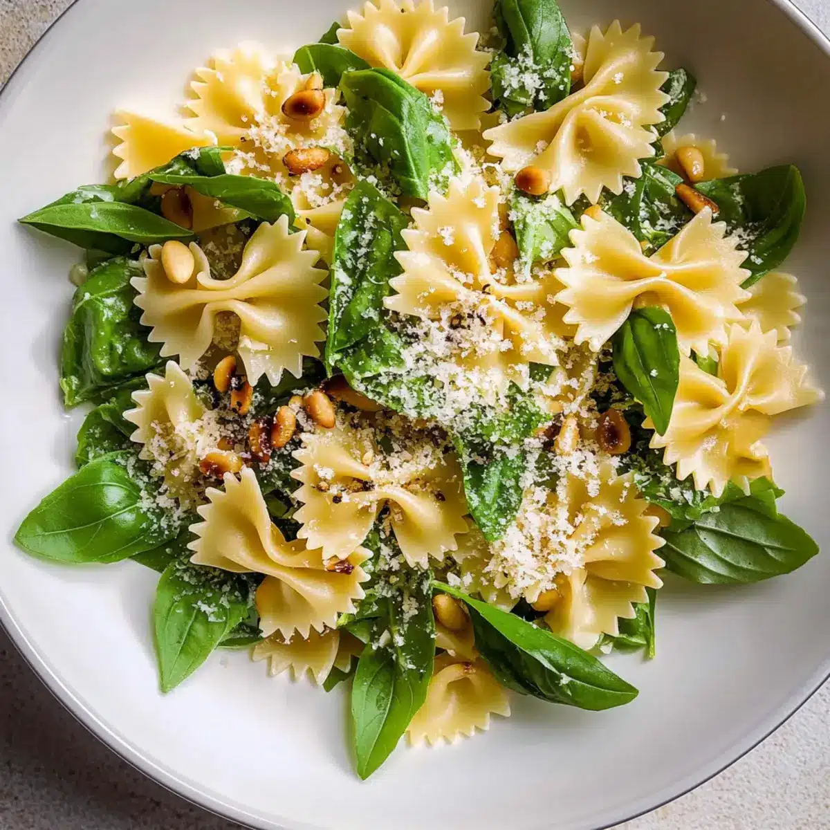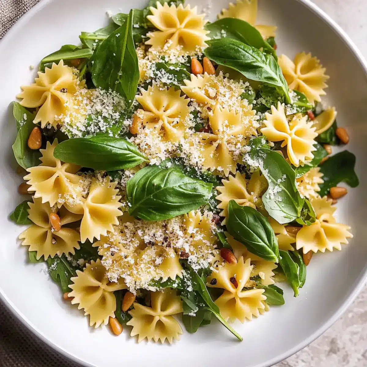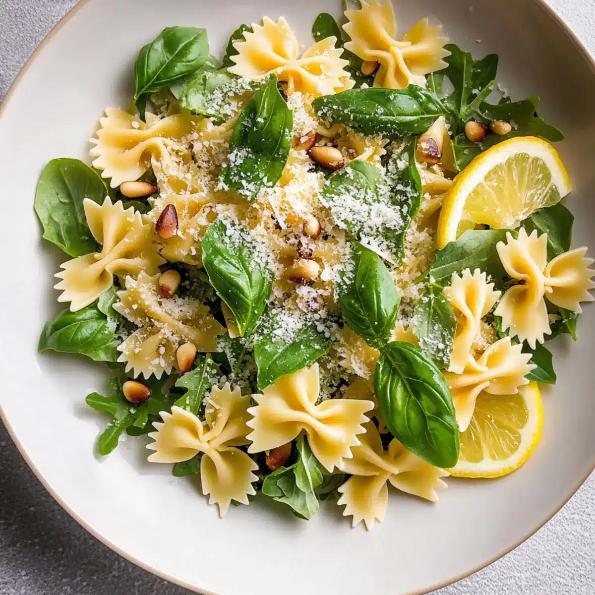 These Lemon Basil Bowtie Pasta Salad ingredients are perfect for meal prep, allowing you to simplify your week ahead! You can prepare the vinaigrette up to 3 days in advance; just refrigerate it in an airtight container to keep it fresh. Cooked pasta can be made ahead of time and stored in the fridge for up to 48 hours as well; just remember to rinse it with cold water to prevent sticking. When you’re ready to serve, simply toss the prepped pasta, arugula, toasted pine nuts, and cheese with the freshly shaken vinaigrette. This way, you’ll enjoy a vibrant, delicious salad that tastes just as fantastic as if it was made fresh on the day!