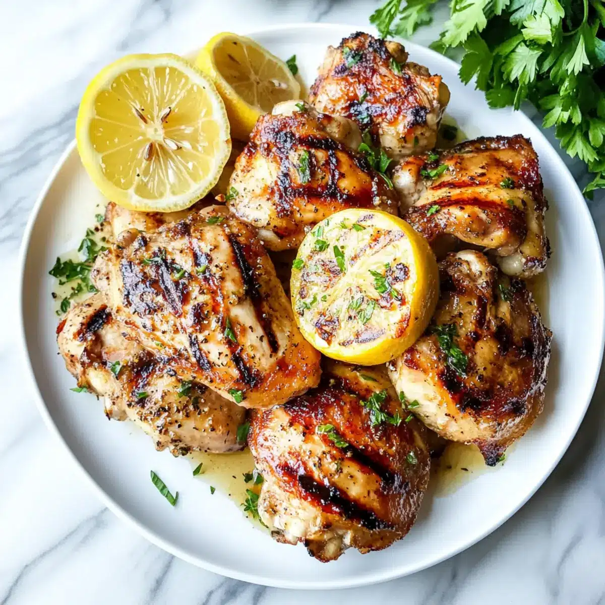 As I placed the marinated chicken thighs on the grill, an irresistible aroma of garlic and citrus wafted through my backyard, sending my taste buds into a delicious frenzy. Get ready to elevate your dinner game with my Lemon Garlic Chicken Thighs, a dish that promises bold flavors and minimal fuss. Perfect for those busy weeknights or casual summer gatherings, these juicy grilled thighs are not only easy to prepare but also a definite crowd-pleaser. The marriage of bright lemon and savory garlic transforms the chicken into a delightful centerpiece that pairs beautifully with various sides like roasted veggies or a crisp salad. Are you ready to impress your family and friends with this quick and flavorful recipe? Let’s dive in!