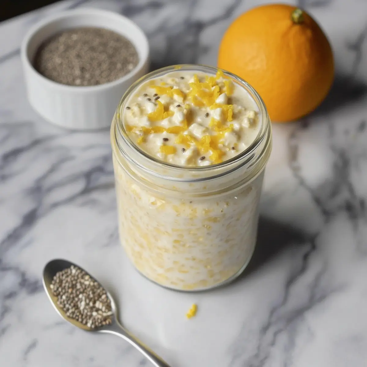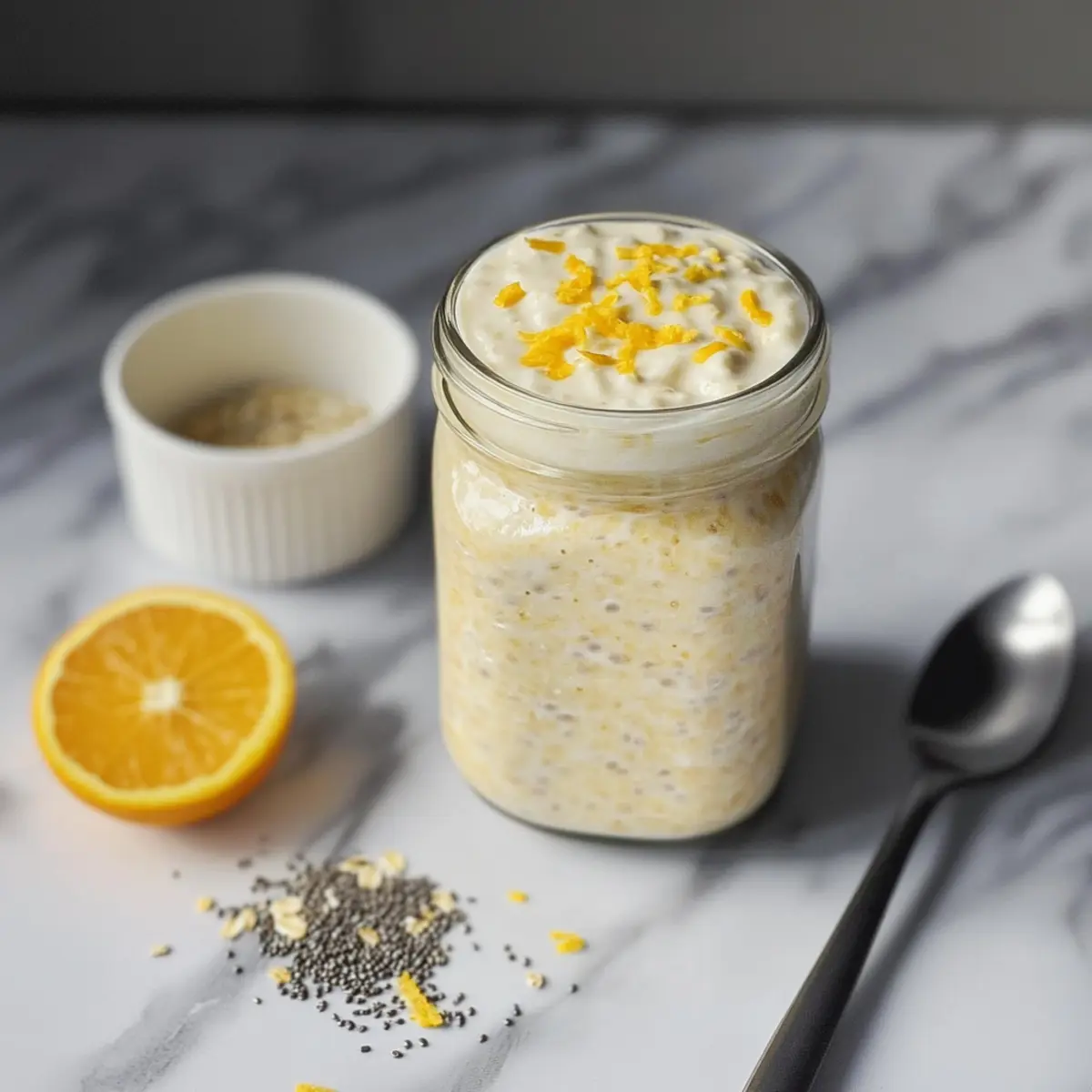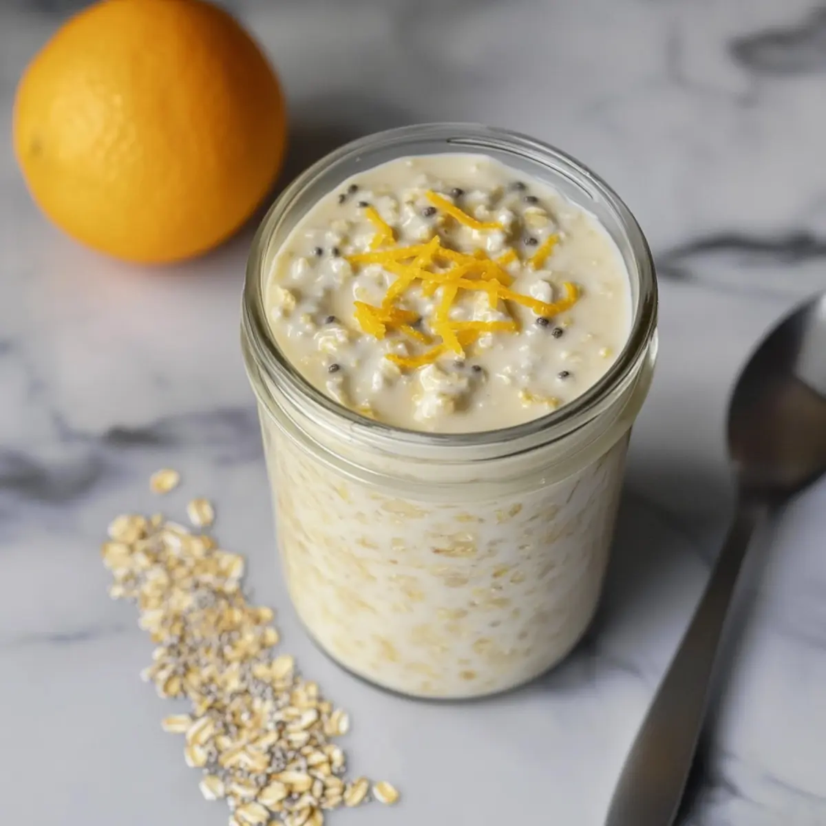 Transfer the oat mixture into a jar or bowl with a lid, ensuring it’s airtight to maintain freshness. Give it a gentle shake or stir to ensure all the ingredients are well incorporated. Once ready, cover the jar or bowl and refrigerate for at least 4 hours, or preferably overnight, allowing the oats to soak up the flavors and achieve a thick, creamy texture that’s reminiscent of a creamy Orange Creamsicle.