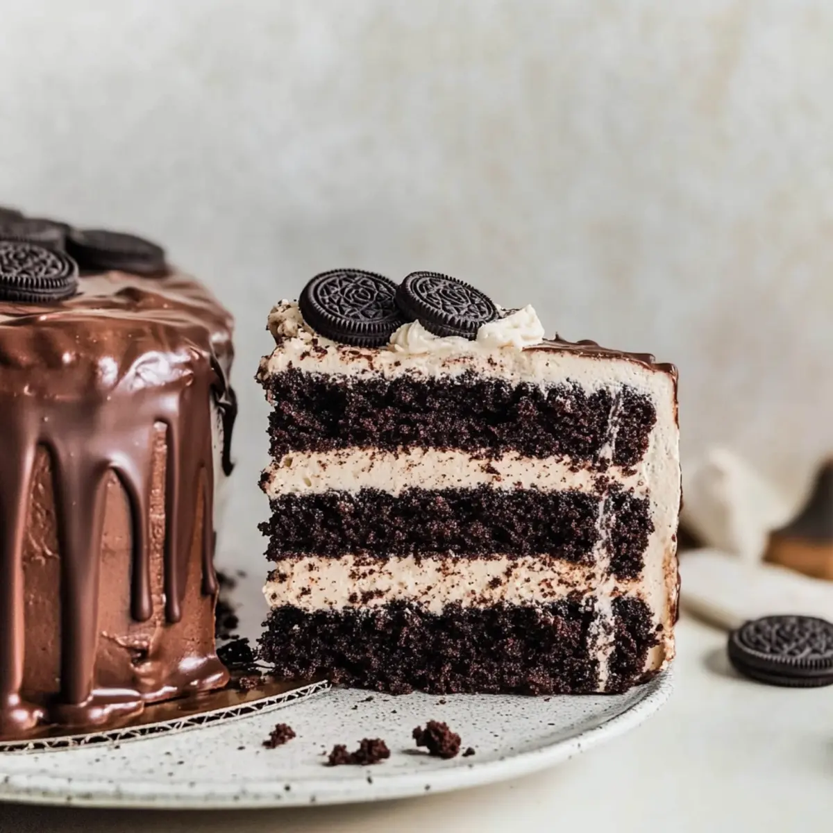 Decadent Oreo Cake with Creamy Ganache and Oreo Frosting