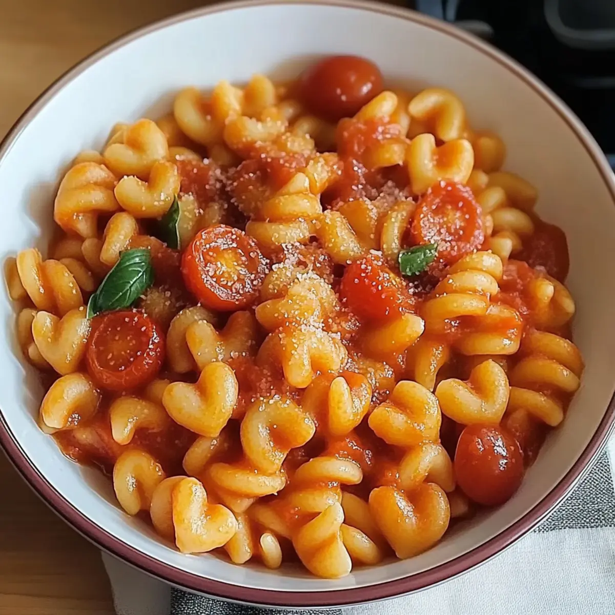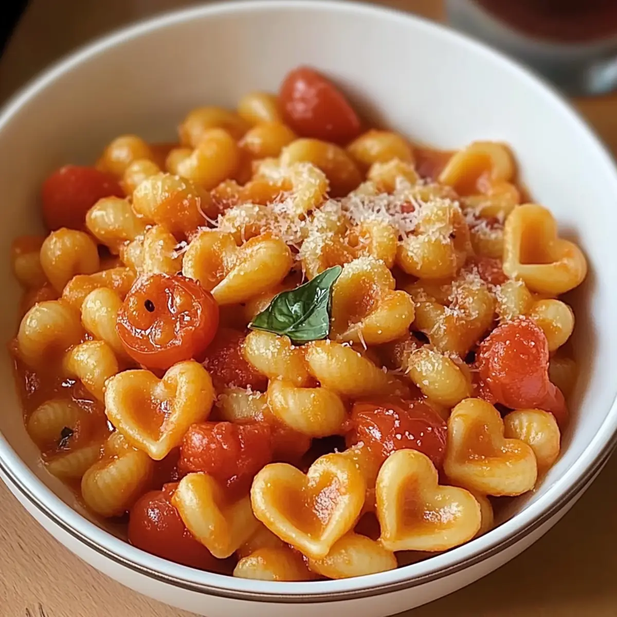 - Gently add the cooked heart-shaped pasta to the skillet, tossing it with the tomato mixture. Stir in a handful of chopped fresh basil leaves and half of the grated Parmesan cheese. Cook for an additional 2-3 minutes until heated through.