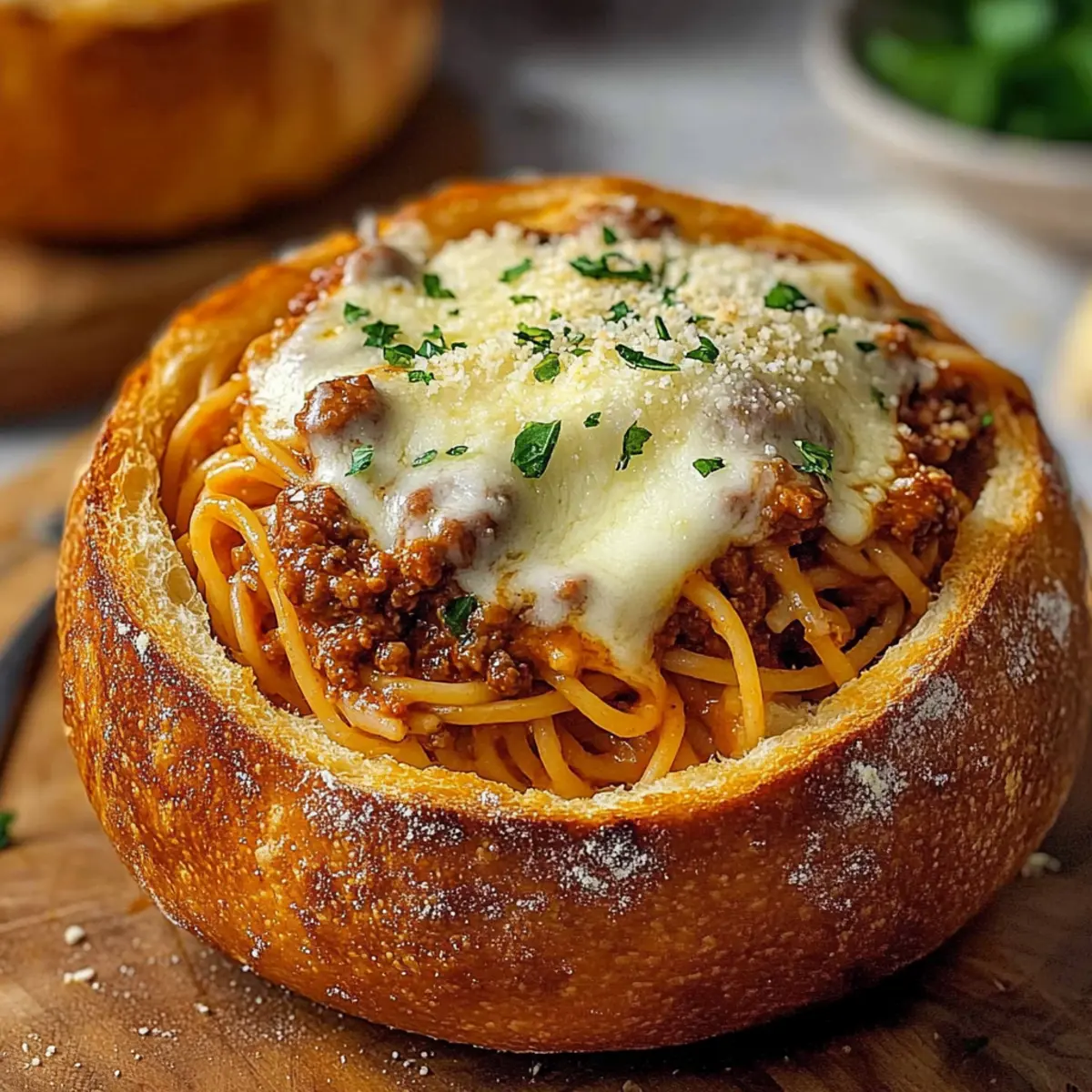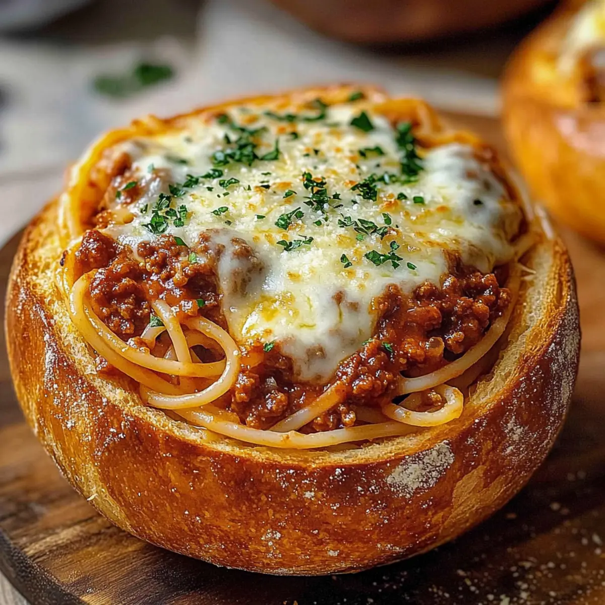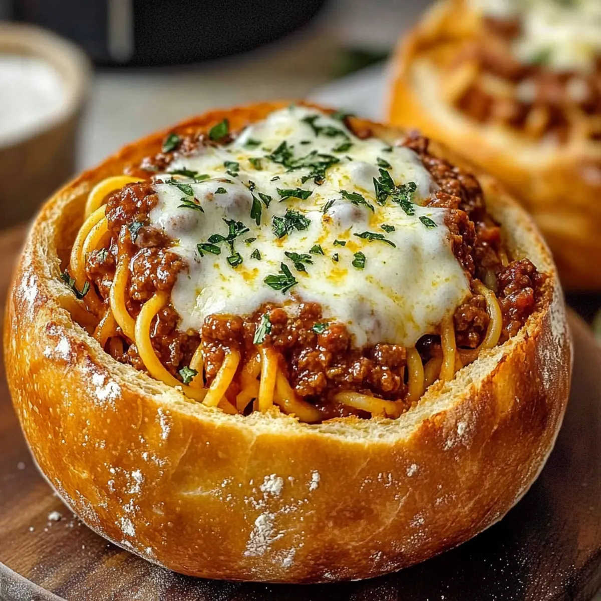 These Pasta in Crusty Bowls are perfect for busy weeknights and meal prep enthusiasts! You can prepare the hearty meat sauce up to 3 days in advance and store it in an airtight container in the refrigerator. To keep your bread bowls fresh, hollow them out and brush with garlic butter up to 24 hours ahead; simply wrap them tightly in plastic wrap to prevent them from drying out. When you’re ready to serve, cook the spaghetti and toss it with the sauce, then fill each bread bowl and top with cheese. Baking them fresh ensures every bite is just as delicious and comforting as when first made!