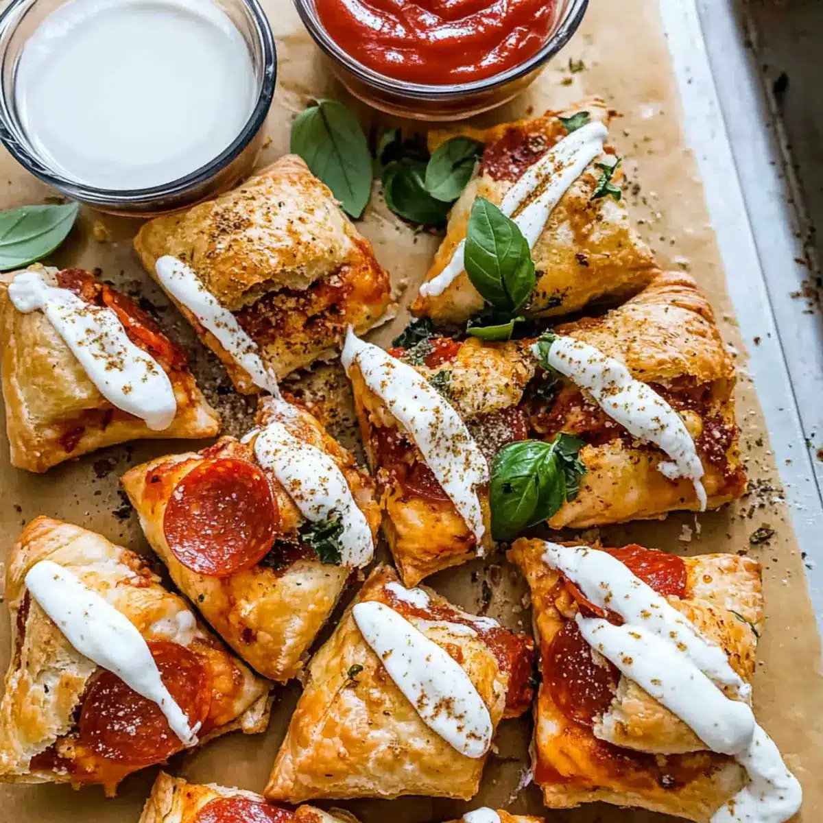 Marinara Sauce: A classic dipping option, this rich and tangy sauce beautifully enhances the flavors of the pizza puffs. It adds an extra layer of delight for sauce lovers!