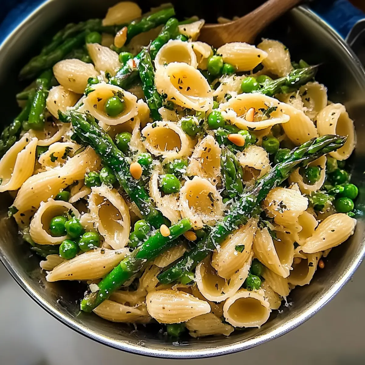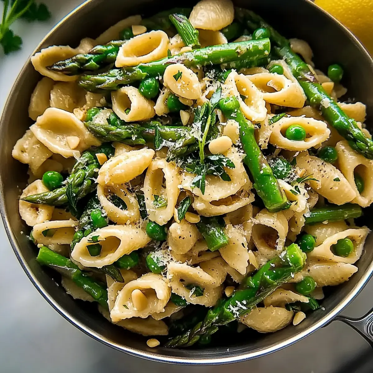 Finally, fold in the mixed herbs and toasted pine nuts, gently stirring to incorporate. Serve your Spring Asparagus Pasta immediately, topped with extra cheese and a drizzle of olive oil for that extra touch. The harmonious blend of flavors will surely tempt your taste buds!