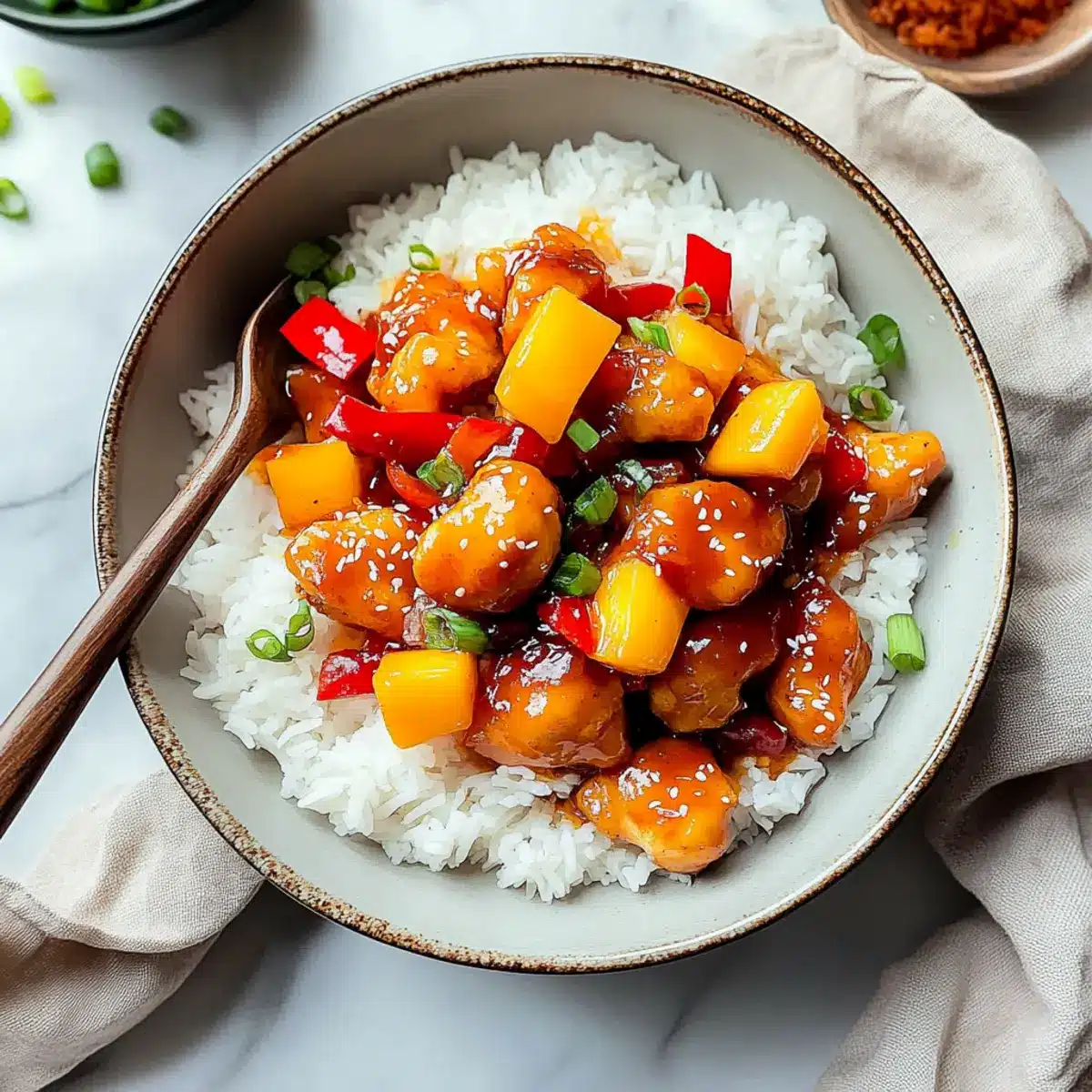 “Did you hear that sizzling sound? It’s my kitchen working its magic again, and I’m brewing up a family favorite: Sweet and Sour Chicken! This dish brings a delightful combination of juicy chicken, pops of bright bell peppers, and the unmistakable sweetness of pineapple, all enveloped in a tangy sauce that keeps everyone coming back for more. What I love most about this 30-minute recipe is not just its quick prep time, making it perfect for busy weeknights, but also its ability to shine at the dinner table, delighting both kids and adults alike. And the best part? You can customize it with alternatives like succulent chicken thighs or even tofu for a vegetarian twist. Ready to transform your evening with this easy, crowd-pleasing dish? Let’s dive in!”