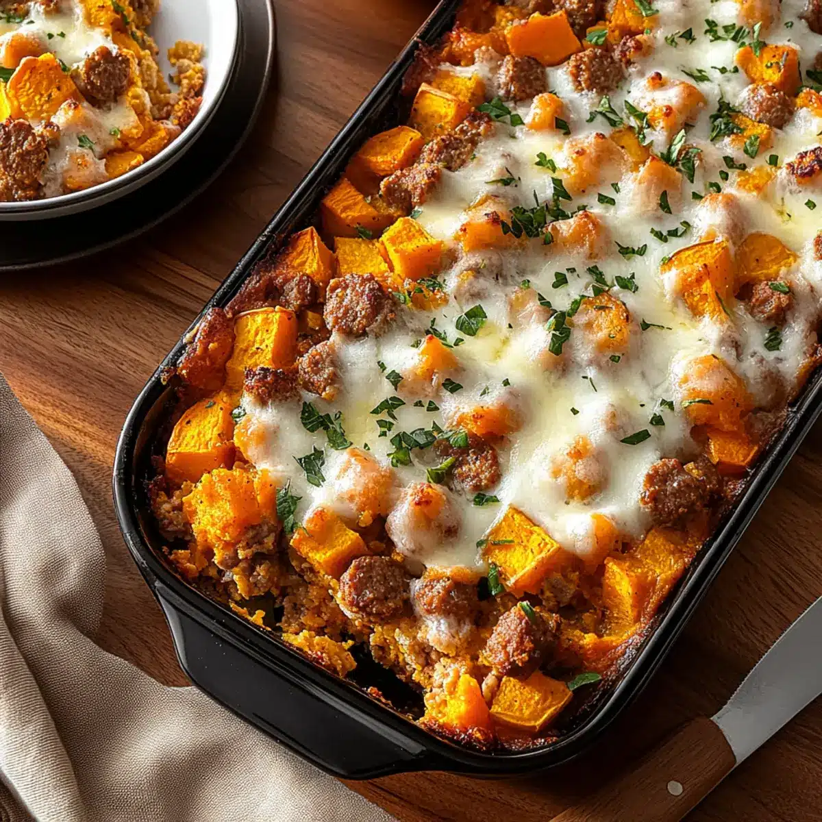 Waking up to a bustling kitchen, the savory aroma of turkey sausage mingling with sweet potatoes makes for a delightful morning surprise. This Sweet Potato & Turkey Sausage Breakfast Bake is not just a meal; it’s a vibrant start to your day that’s both protein-packed and meal-prep friendly. With tender, caramelized sweet potatoes and colorful bell peppers cradled in fluffy eggs, this dish is perfect for those busy mornings or leisurely brunches with family and friends. Each slice is a hearty, veggie-loaded delight that promises to keep you satisfied without the fuss. Curious how to make this comforting bake your new breakfast favorite? Let’s dive in!