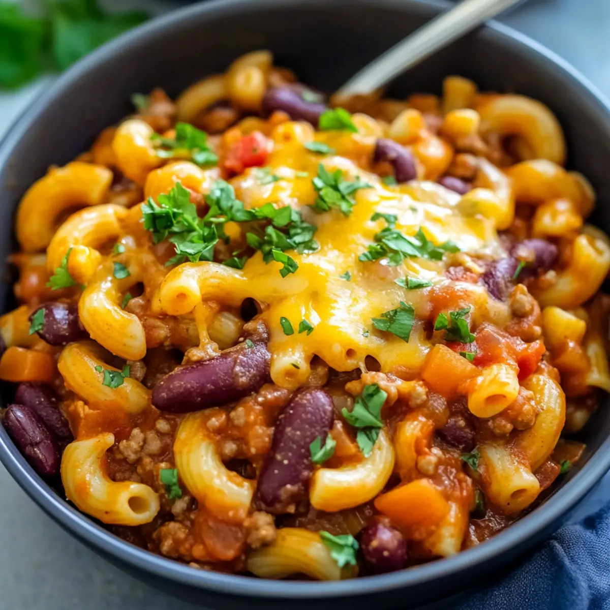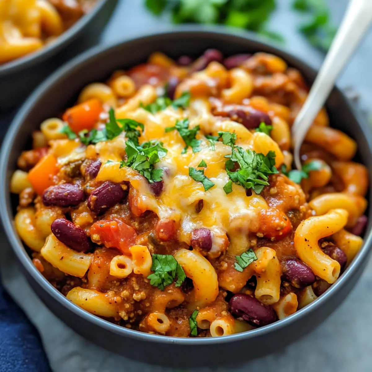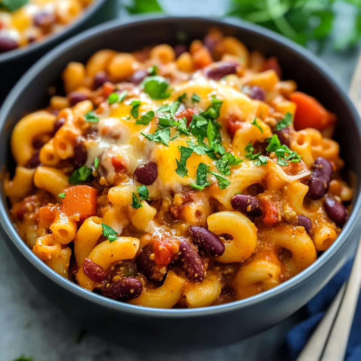 - Serve hot: Spoon the Vegetarian Chili Mac into bowls and sprinkle with remaining cheese.
